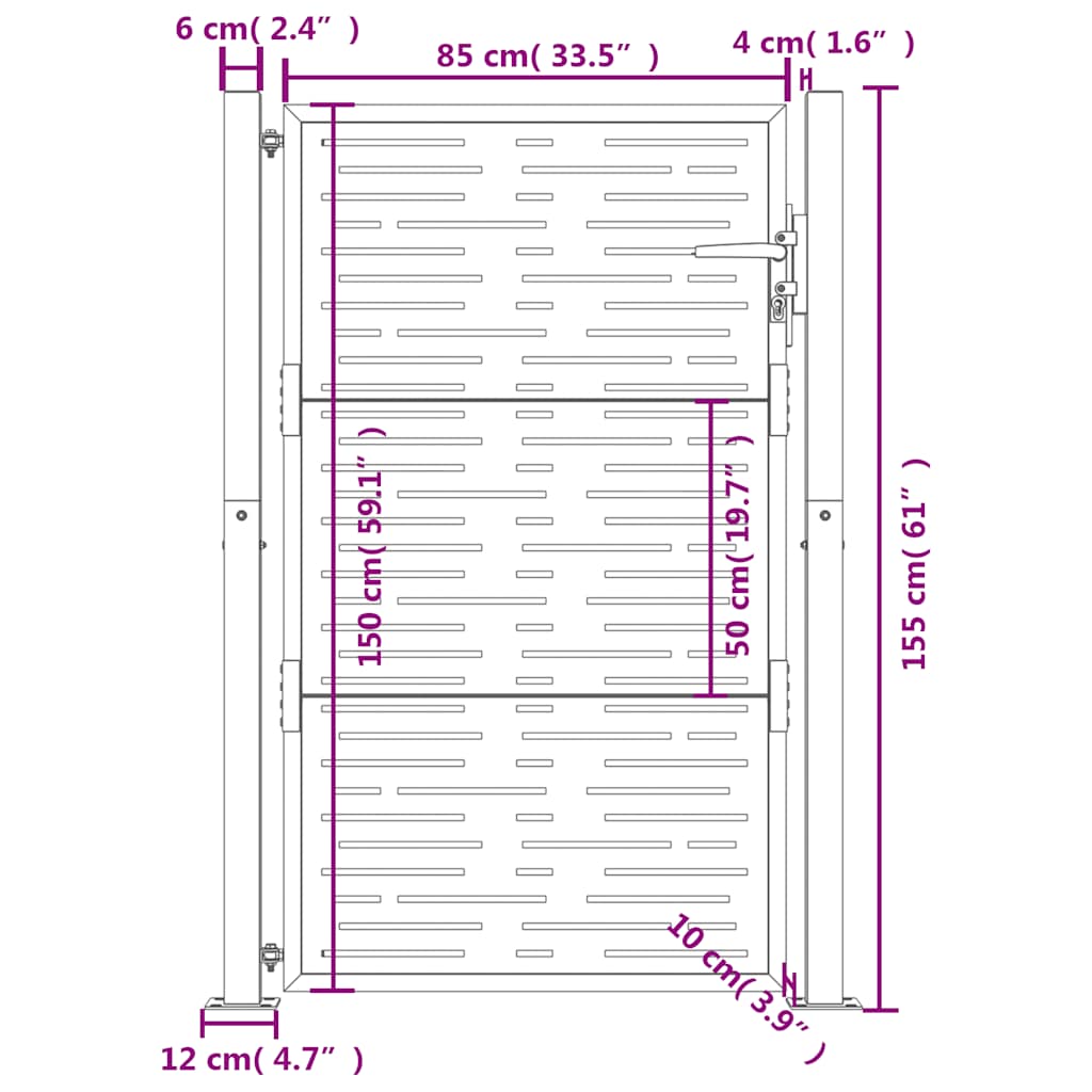 Zahradní branka 105 x 155 cm cortenová ocel Pruhy