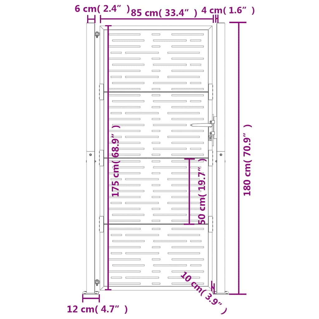 Zahradní branka 105 x 180 cm cortenová ocel Pruhy