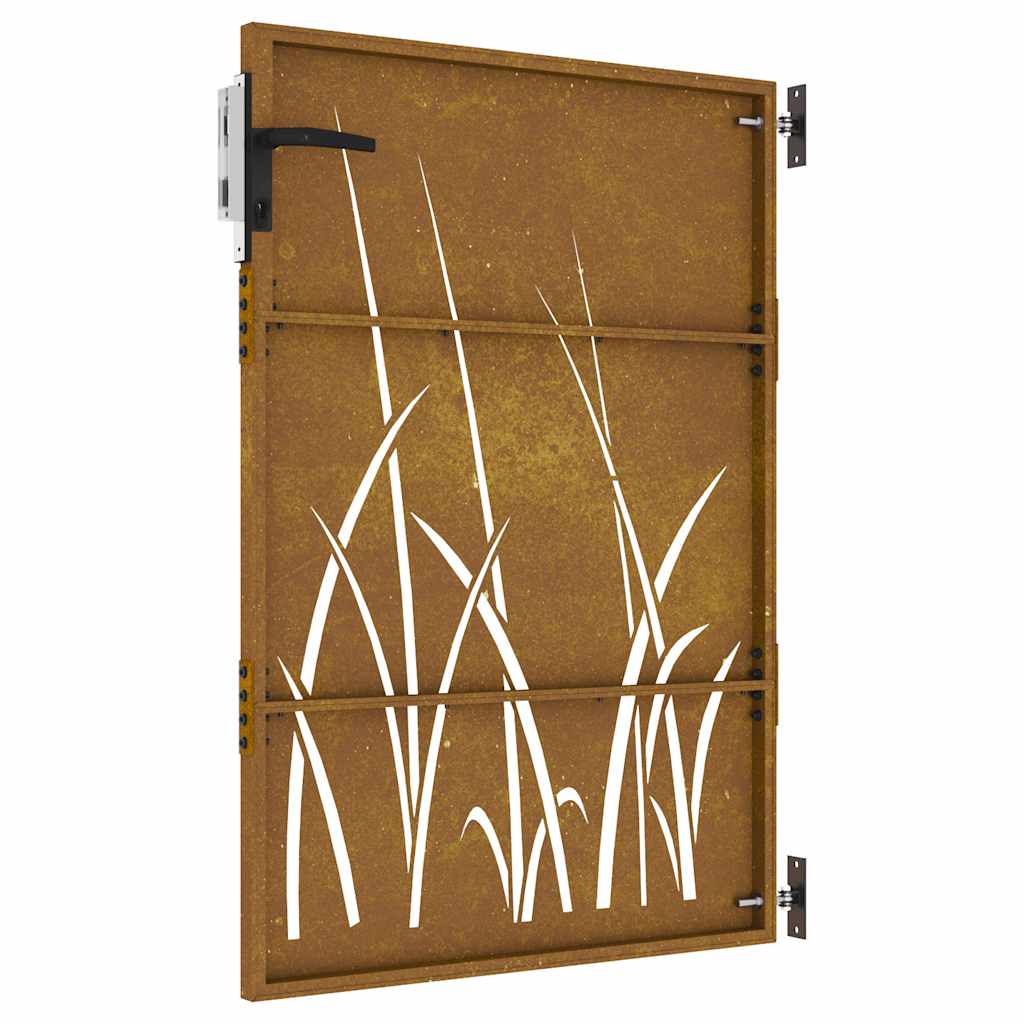 Zahradní branka 85 x 150 cm cortenová ocel Tráva