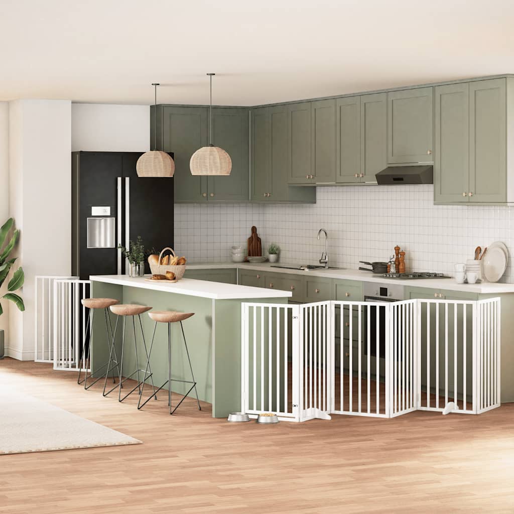 Zábrana pro psy s dvířky skládací 12 panelů bílá 600 cm topol