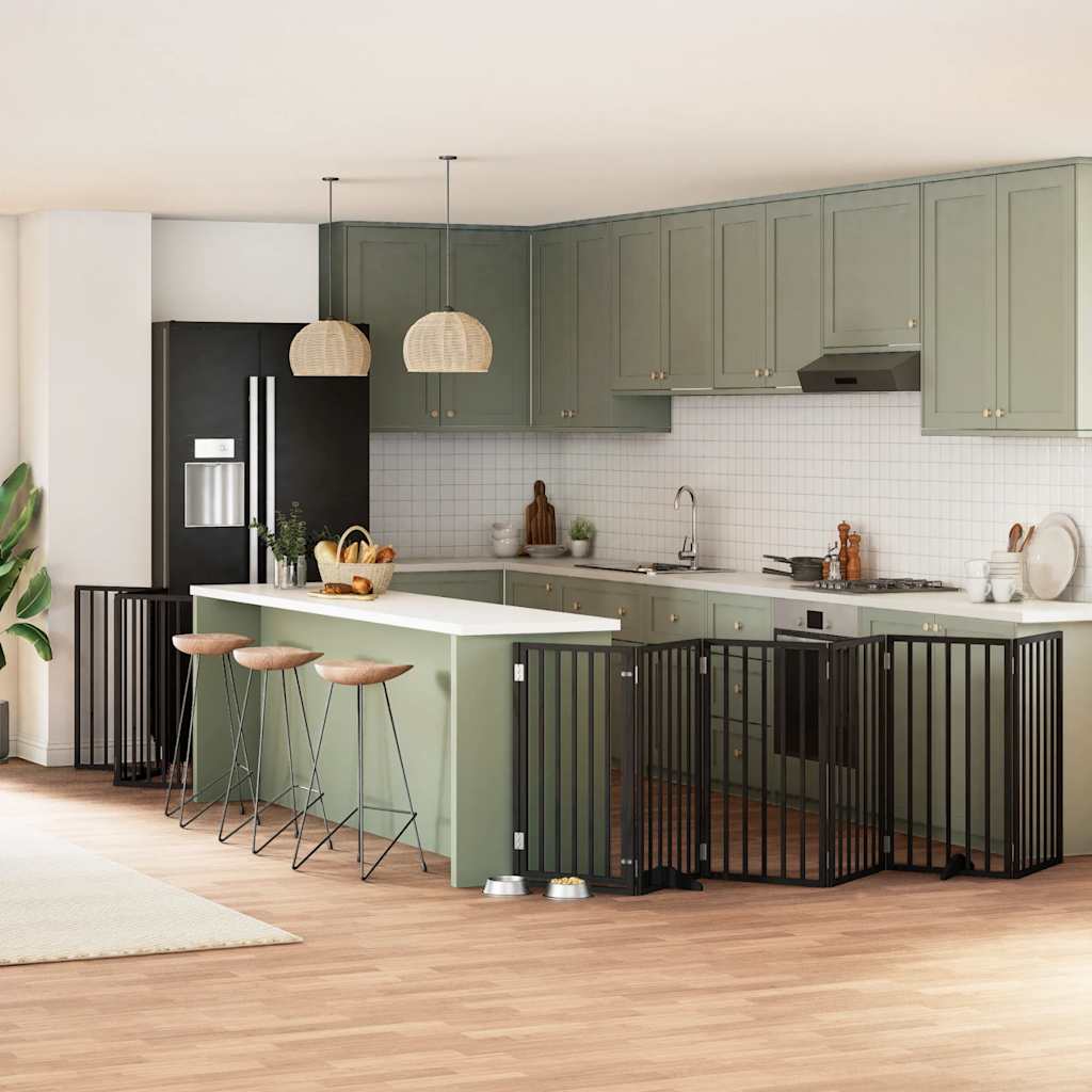 Zábrana pro psy s dvířky skládací 12 panelů černá 600 cm topol
