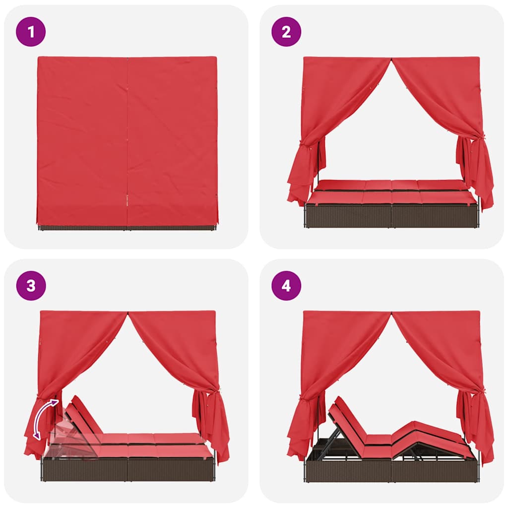 Dvojité sluneční lehátko s střechou Hnědá 205 x 129 x 200 cm