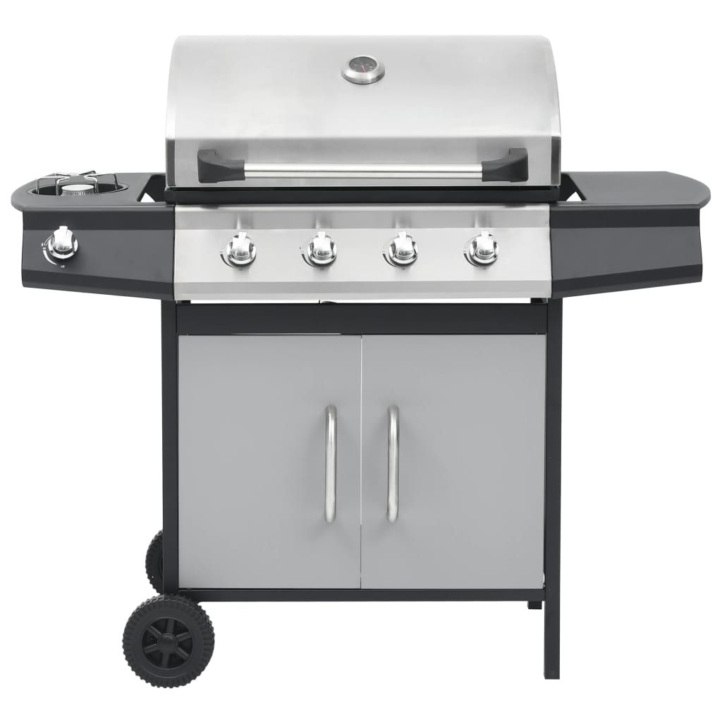 Plynový gril 4+1 hořáky černý a stříbrný ocel a nerezová ocel