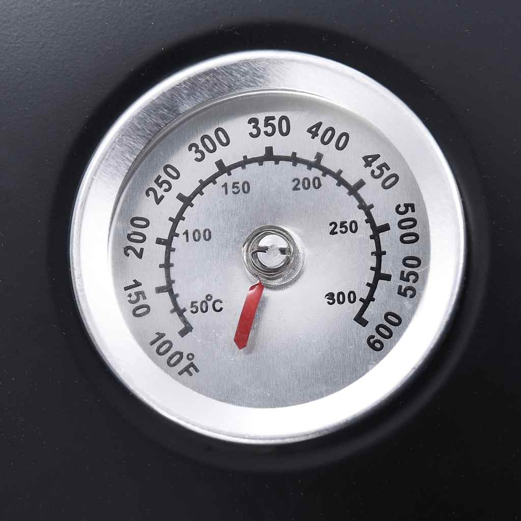Termostat na víku ukazuje teplotu, kterou lze snadno regulovat bočními dvířky a víkem. Zvýšený rošt na dřevěné uhlí umožňuje účinnější cirkulaci vzduchu. Nohy do trojúhelníku zaručují lepší stabilitu. Po použití můžete zahradní gril rozebrat na části pro snazší přepravu a skladování. Upozornění: Ujistěte se, že zahradní gril stojí na rovné stabilní ploše.